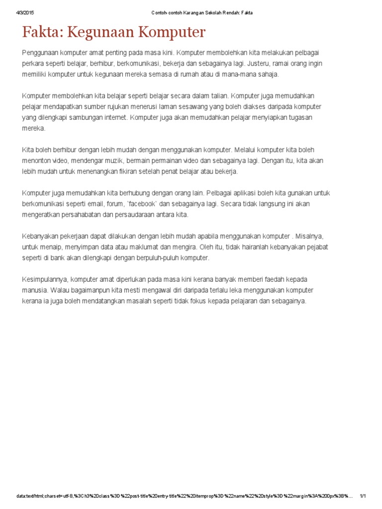 Contoh Contoh Karangan Sekolah Rendah Fakta Kegunaan Komputer Pdf